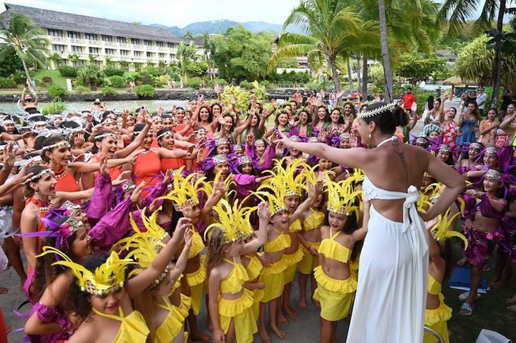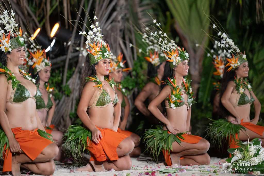 Le beau temps était au rendez-vous et les danseuses ont brillé de mille feux sur le pae pae du motu de l’Intercontinental Tahiti.